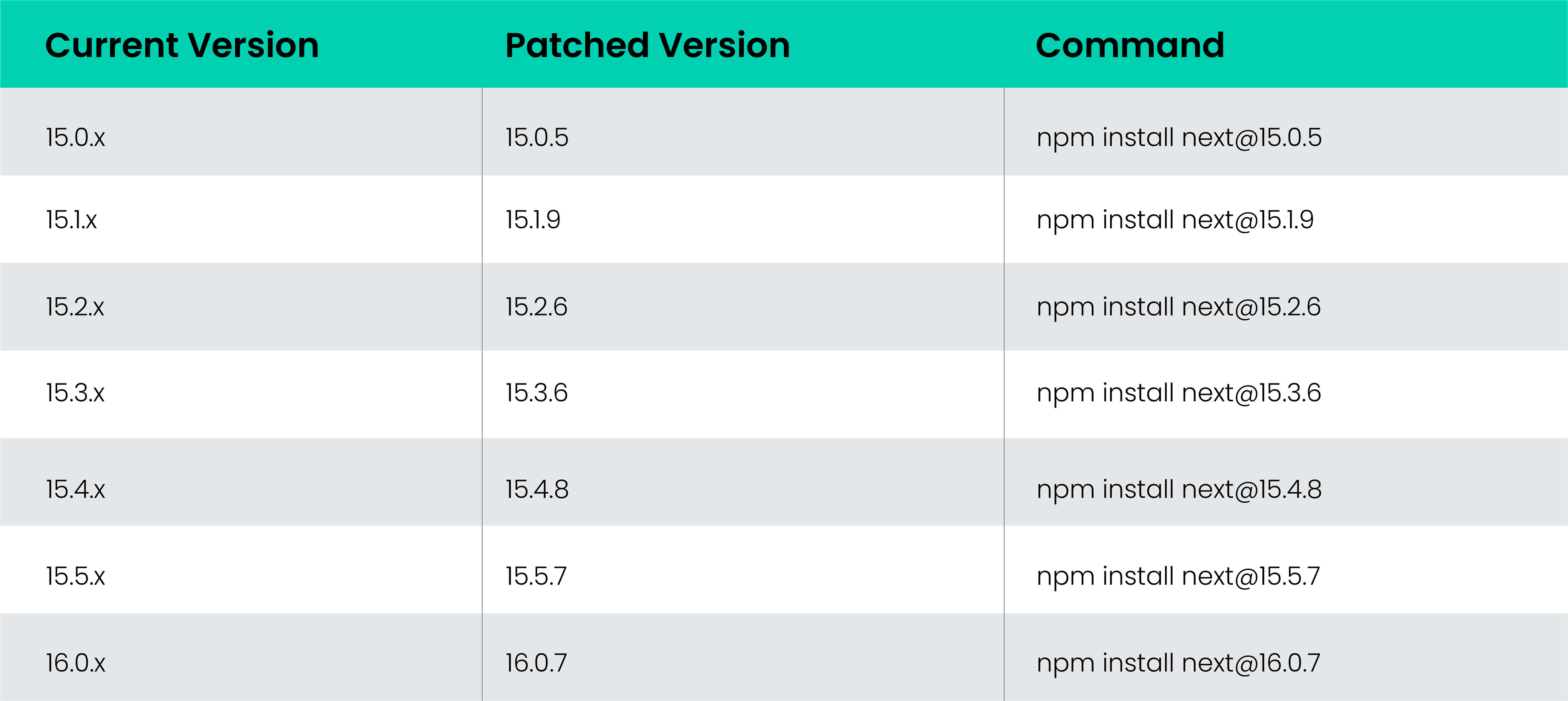 As of this writing, any user or organization operating the following versions of Next.js and React is susceptible to the vulnerability.